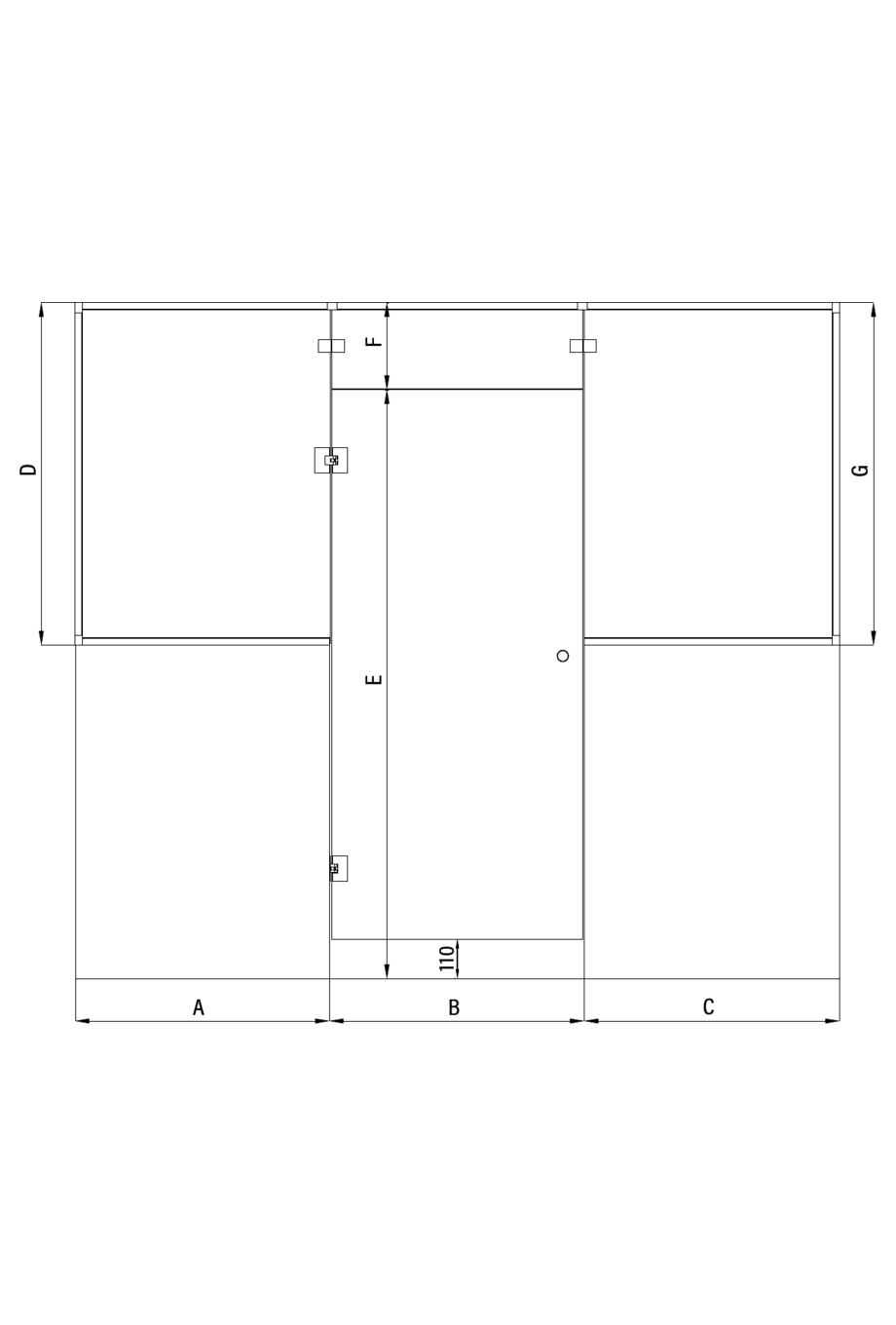 The size of the shower door can be selected from the standard dimensions (700/800/900 x 2000) or it can be manufactured by special dimensions; the upper and the side panels are always manufactured by special dimensions. When selecting the size of the door and the upper panel, the width is the width of the installation opening and the height is the height of the panel pane. When dimensioning the height of the installation opening of the door, a 5mm reserve is automatically left at the top edge of the panel and a 110mm reserve is left at the bottom edge. When selecting the side panels, the width and the height are the width and the height of the installation opening. Installation and adjustment ranges are included automatically in the dimensioning of the panel panes of the side panels.If the size of the door exceeds 1.7m2 an additional hinge is necessary to provide additional support.