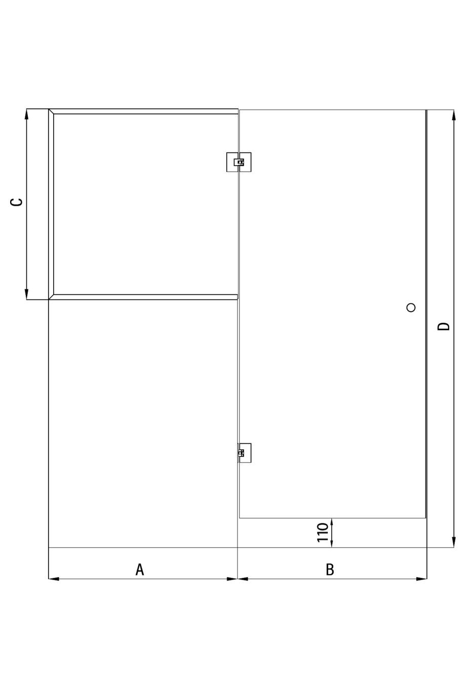 The size of the shower door and the side panels are always manufactured by special dimensions. When selecting the size of the door, the width is the width of the installation opening and the height is the height of the installation opening. When dimensioning the height of the installation opening of the door, a 5mm reserve is automatically left at the top edge of the panel and a 110mm reserve is left at the bottom edge. When selecting the side panel, the width and the height are the width and the height of the installation opening. The installation and adjustment ranges are included automatically in the dimensioning of the panel panes of the side panels.If the size of the door exceeds 1.7m2 an additional hinge is necessary to provide additional support.