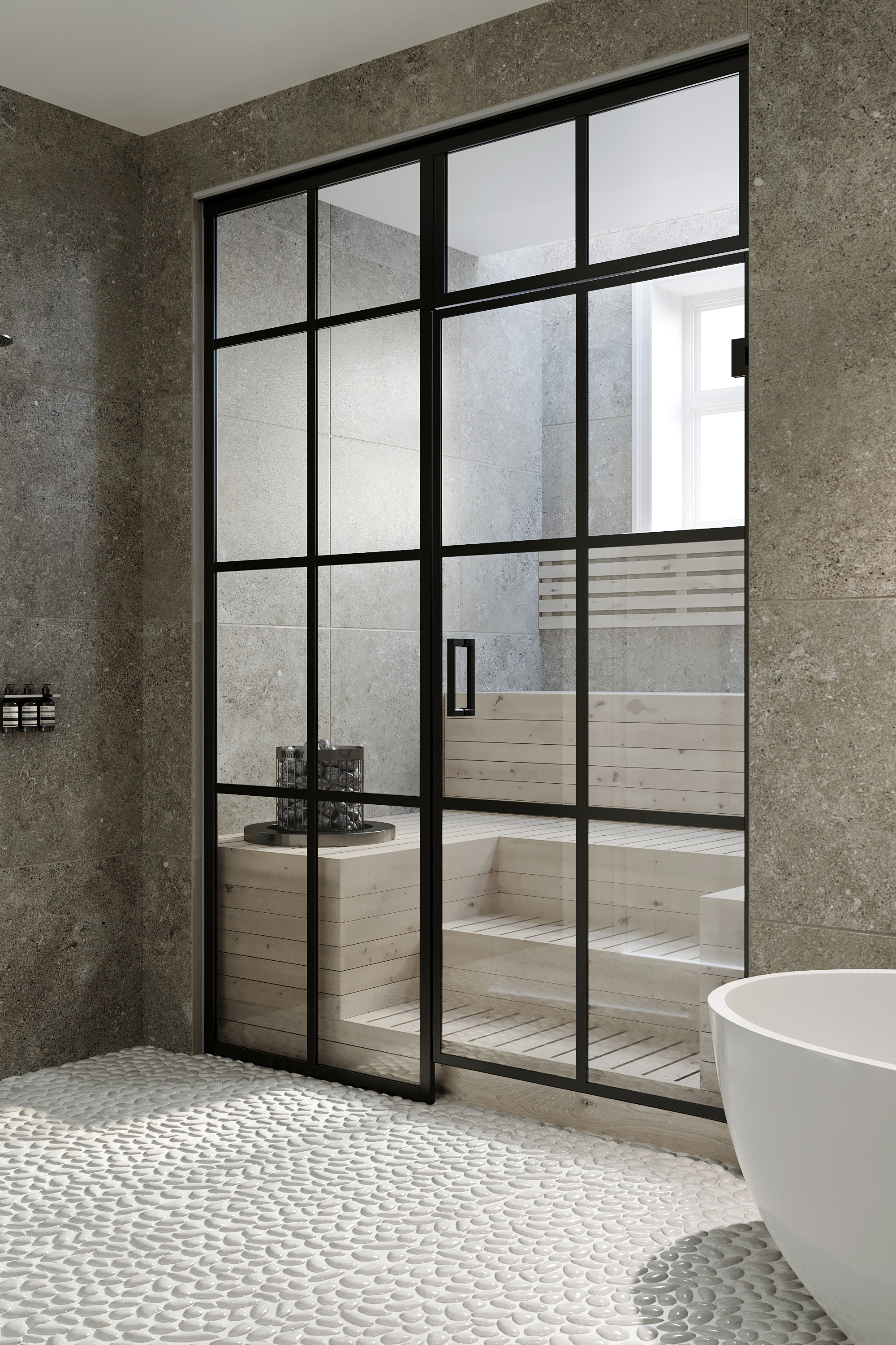 Bläk series sauna products have a modern design in an industrial style.