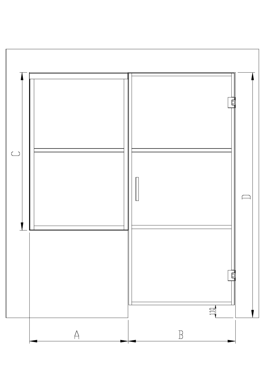 Sauna doors are always made to measure. When selecting the size of the door and the upper panel, the width is the width of the installation opening and the height is the height of the panel pane. When measuring the height of the installation opening of the door, a 5mm reserve is automatically left at the top edge of the panel and a 110mm reserve is left at the bottom edge. When selecting the side panels, the width and the height are the width and the height of the installation opening. Installation and adjustment ranges are included automatically in the dimensioning of the panel panes of the side panels. If the size of the door exceeds 1.7m2 an additional hinge is necessary to provide additional support.