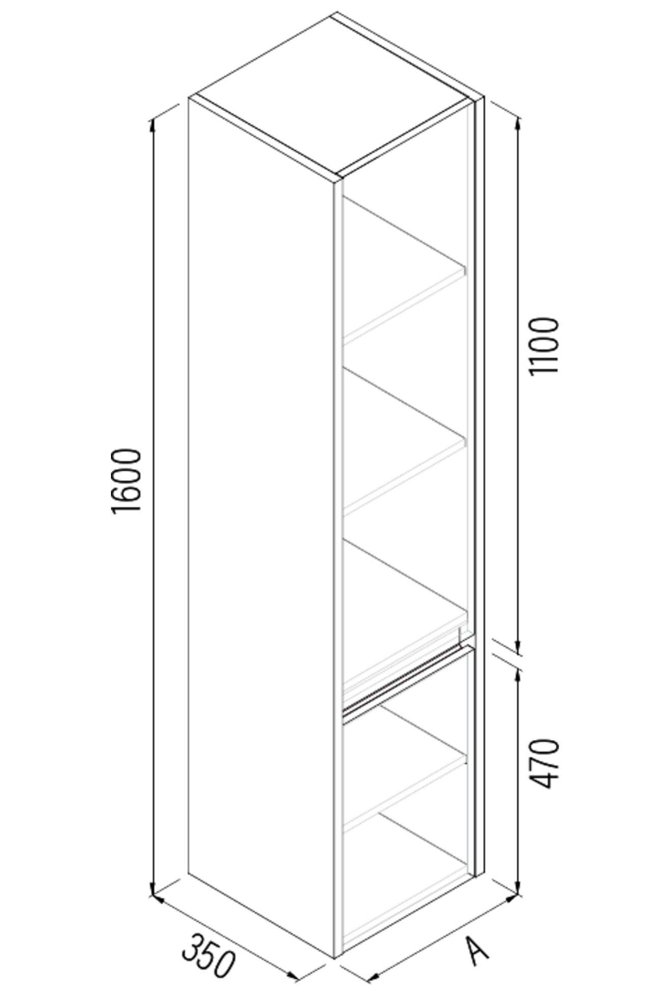 Tall unit bring more storage space to bathroom. Product surface materials are the same as in series vanity units. Tall unit is provided with two doors and three glass shelves (position adjustable).