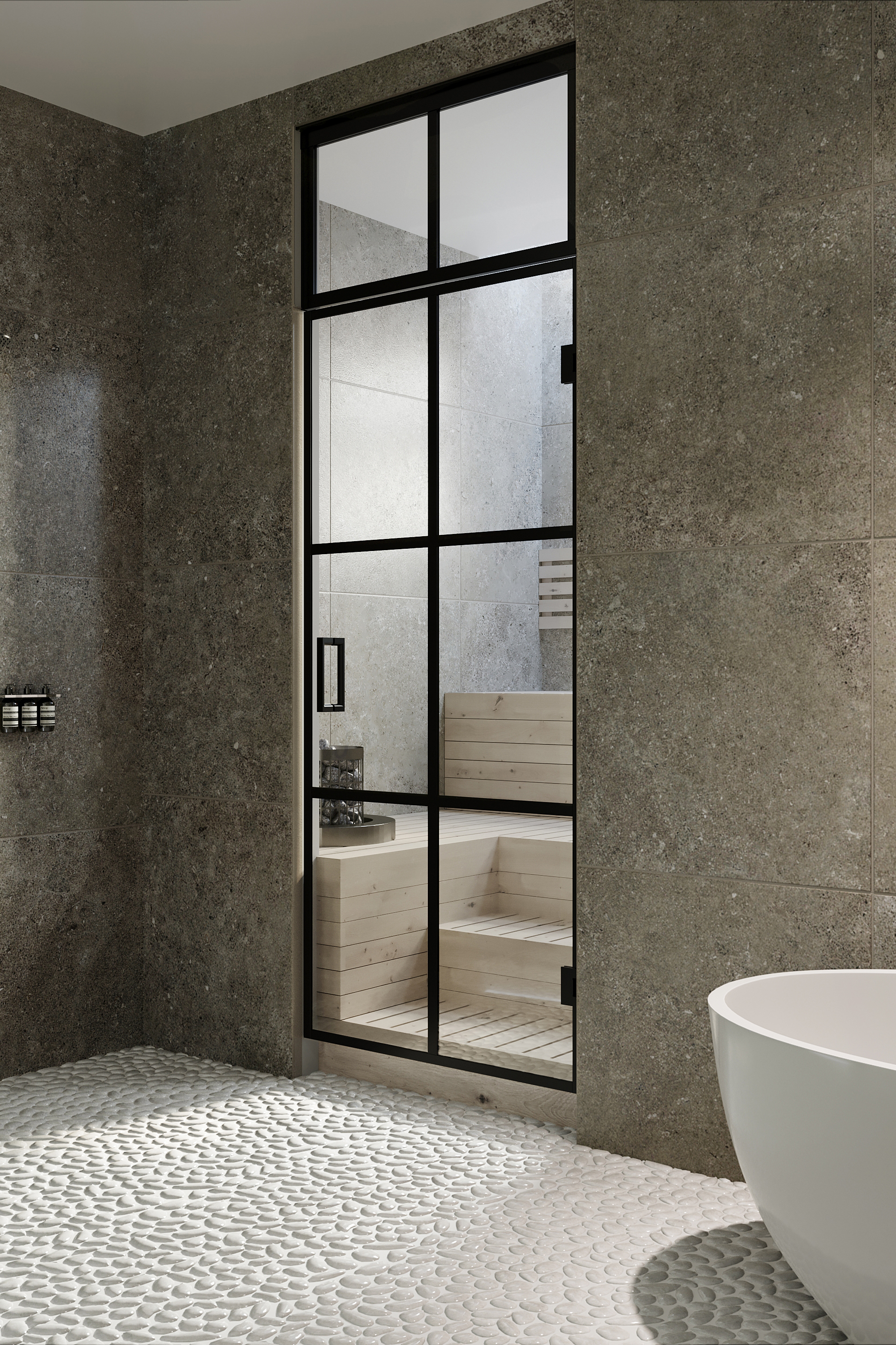 Bläk sarjan saunatuotteet ovat moderniin teollisuushenkiseen tyyliin muotoiltuja.