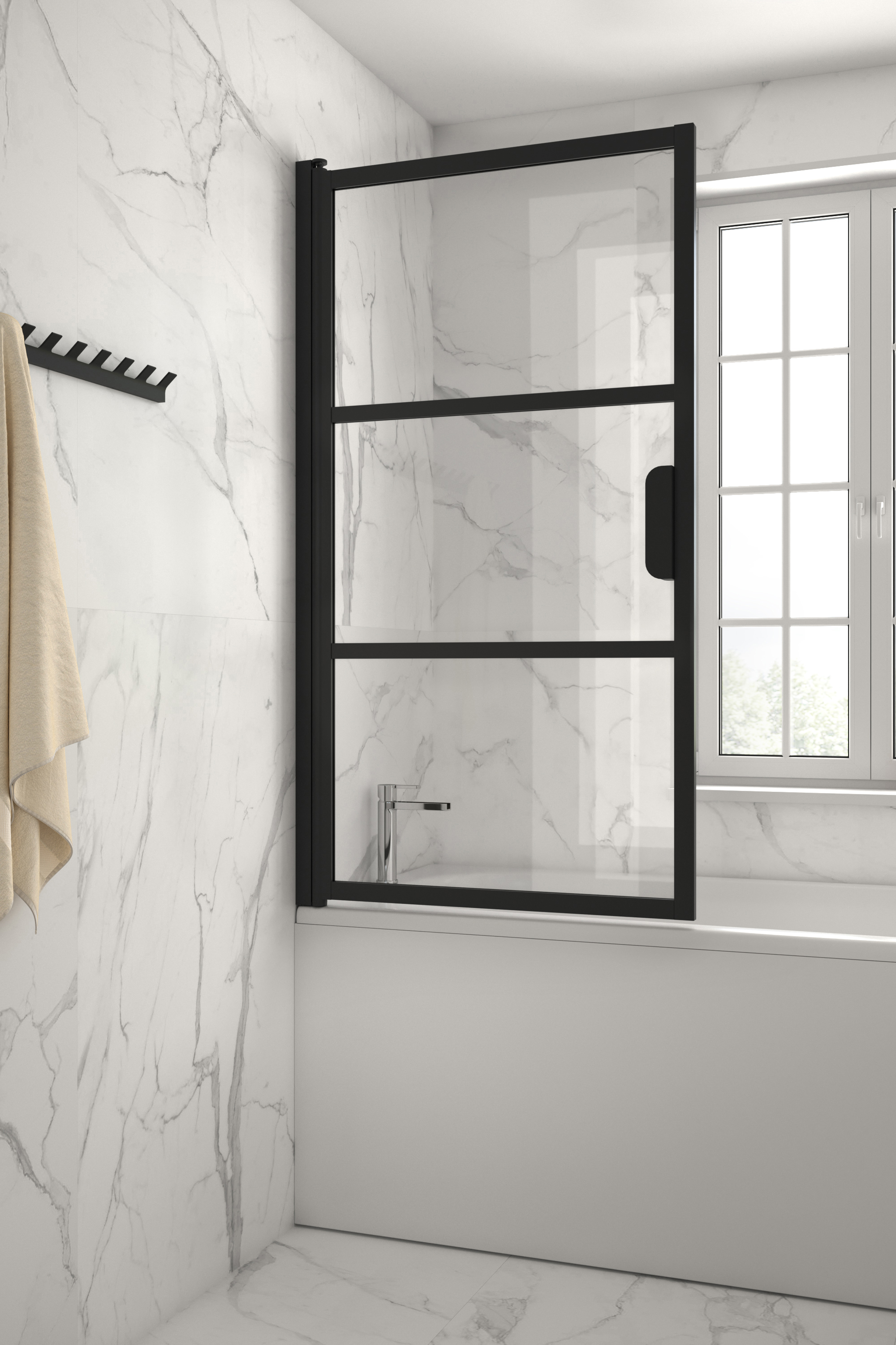 Den vändbara badkarsväggen skyddar utrymmet och möblerna vid badkaret mot stänkvatten. Badkarsväggen kan om så önskas vändas mot väggen.