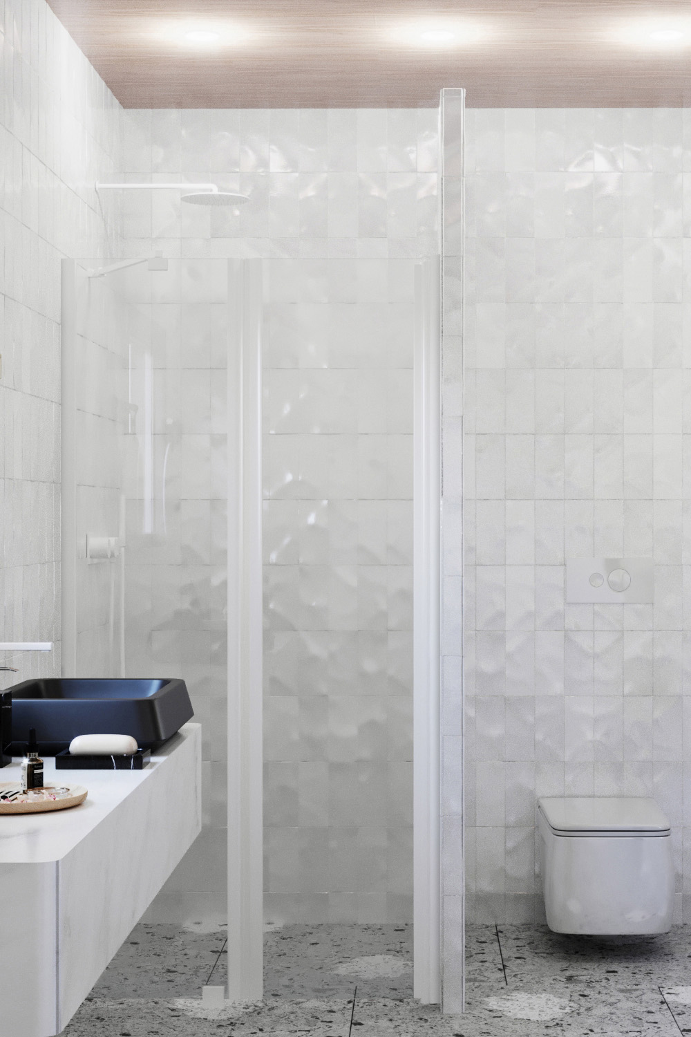 The product is manufactured of 6mm thick tempered safety panel (EN 12150). The safety panel can be treated in the factory with Cranith calcification prevention coating. The coating enables the panel to stay clean easier. Clear and smoke are smooth surfaced and transparent panels Chinchilla and satin panel are not fully transparent, details cannot be made out through the panel. Chinchilla is textured on one side and smooth on the other side. One side of the satin panel is etched to acquire a velvety feel and the other side is smooth. When choosing a satin panel product, bear in mind that the etched surface of the panel is sensitive to scratches and stains. The satin glass may also tint in green, depending e.g. on the lighting in the space. Please contact customer service for a proposal of superbright satin glass if needed.