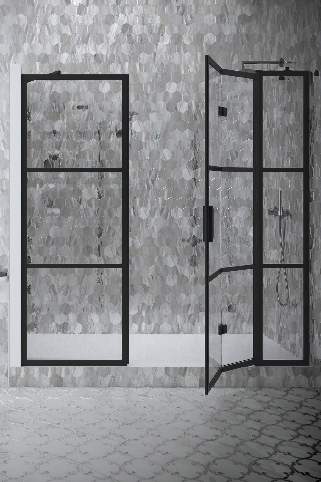 The product is supplied as standard with a 33 mm high floor seal. The optional accessories are a 50mm high floor seal for shower areas where the floor tilting is higher than normal. The length of the floor seal is 1000mm and it is cut to a suitable length on site. The watertight quality of the product can be improved by installing a shower door threshold under the door. The door threshold is cut into a suitable length on the side and glued to the floor. The height of a shaped threshold is 10mm and its width is 16mm.Fixed panel is mounted with tuning leg by default which is suitable for tilted floors in the case of even floor the floor mounted option can be selected.