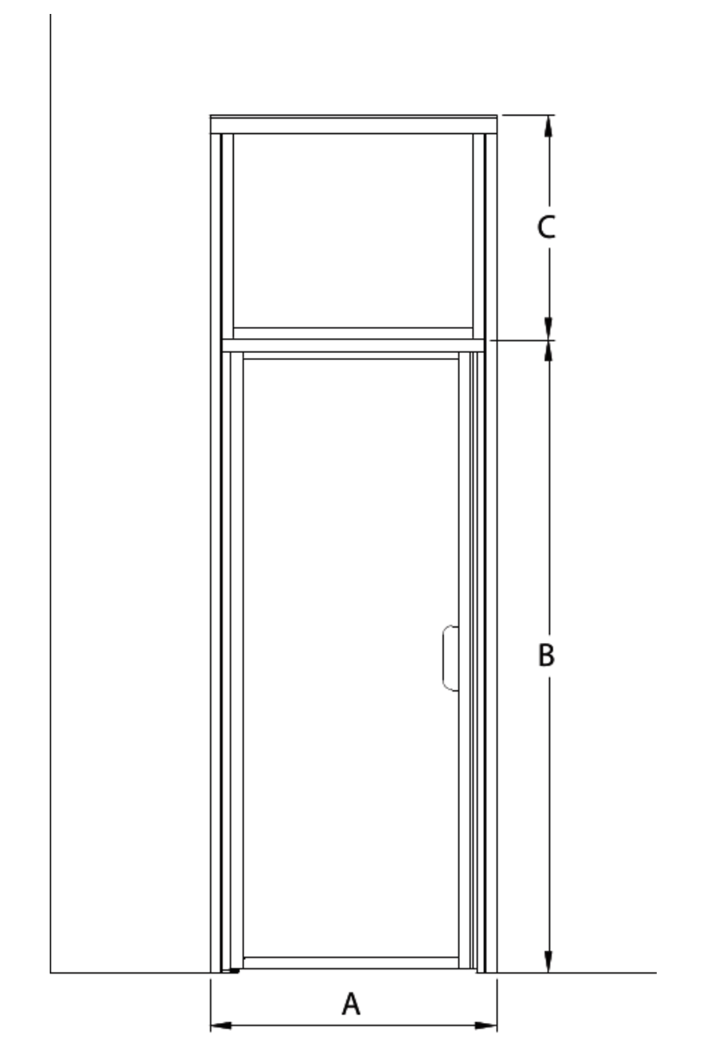 The door panel is mounted to the building wall using wall mounting profile on the hinge side of the doorway and a magnet holding wall profile on the other side. The panels and the upper window are secured with self-drilling screws. The top of the unit is secured to the ceiling by long profiles, covering the top of the unit and by a short profile, covering bottom window edge from one side(both sides). Magnet seals are installed on both the door panel and the wall profile to keep door tightly closed.