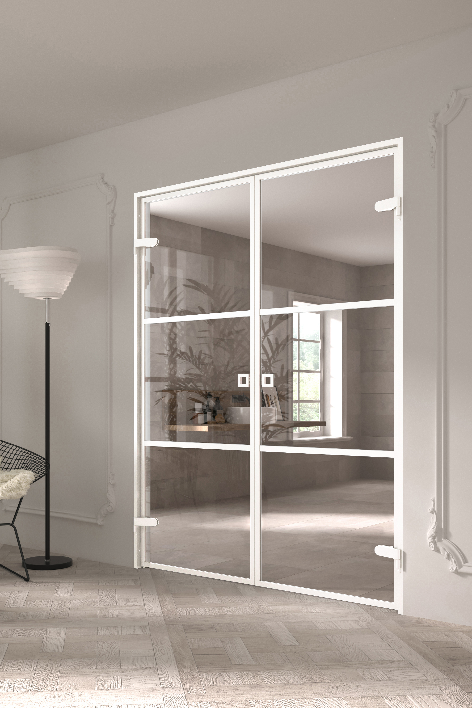 In the New York, Tokyo and Paris models, the door leaves are framed. The Tokyo and Paris models are also equipped with aluminum grids glued to the glass.