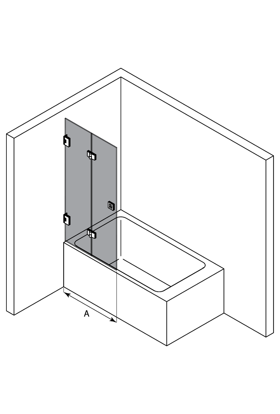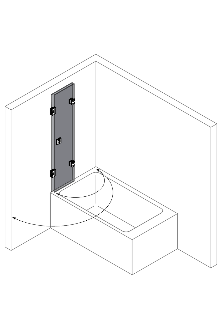 The bath wall turns to both directions 90 degrees and is equipped with adjustable centering hinges. The centring attempts to return the shower screen back to the open and closed positions. In addition, the outermost panel turns 180 degrees relative to the inner panel, so that panels fold against each other.