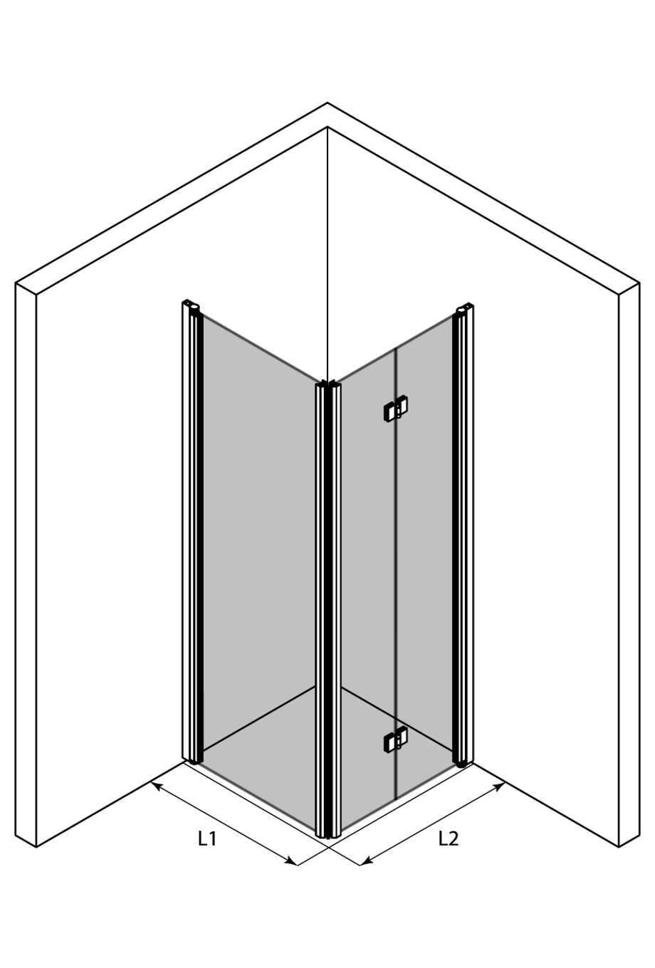 The size of the shower corner can be selected from the standard sizes or it can be manufactured based on special dimensions. The wall mounted profiles have an adjustment tolerance 15mm. The adjustment tolerance may be used for levelling the tilt of the building s walls or for extending the widths of the sides of the shower enclosure in relation to the provided standard dimensions. The widths of one or both sides can be further extended by 34 mm via the extension profile (optional accessory). The extension profile can be grooved, for example, for the inlet of the surface water pipes.
