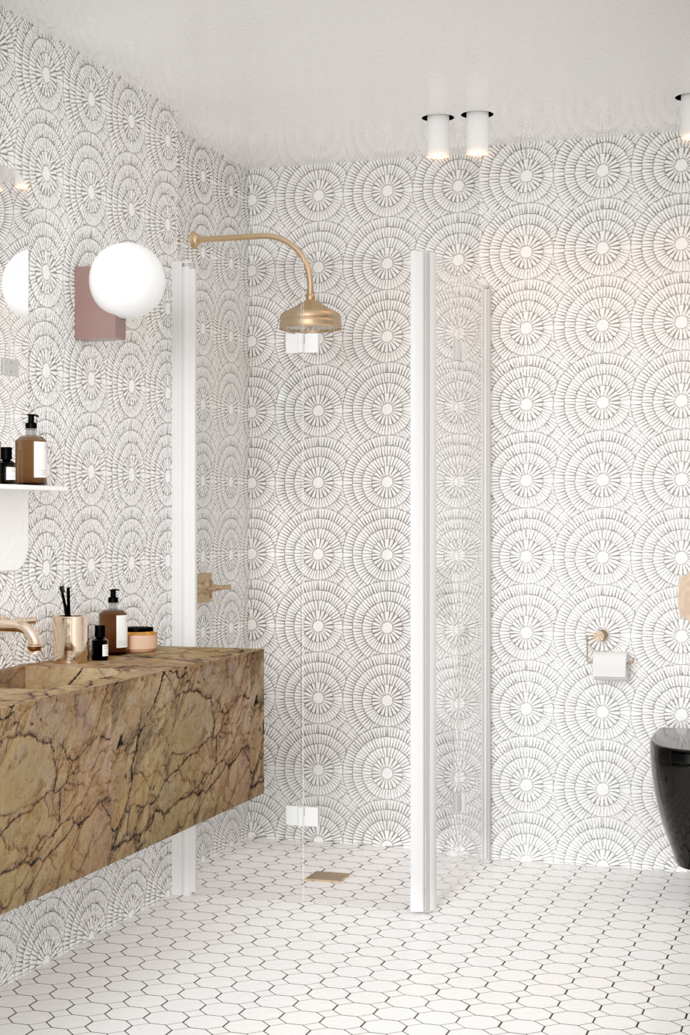 The size of the shower corner can be selected from the standard sizes or it can be manufactured based on special dimensions. The wall mounted profiles have an adjustment tolerance 15mm. The adjustment tolerance may be used for levelling the tilt of the building s walls or for extending the widths of the sides of the shower enclosure in relation to the provided standard dimensions. The widths of one or both sides can be further extended by 34 mm via the extension profile (optional accessory). The extension profile can be grooved, for example, for the inlet of the surface water pipes.
