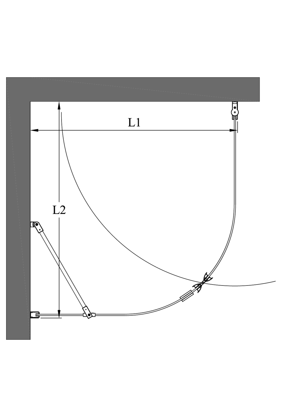 The door opens 90 degrees to the outside and is equipped with an adjustable centring. The function of the centring is to return the door to the open and closed positions. A pair of magnet handles keeps the door tightly closed while showering.
