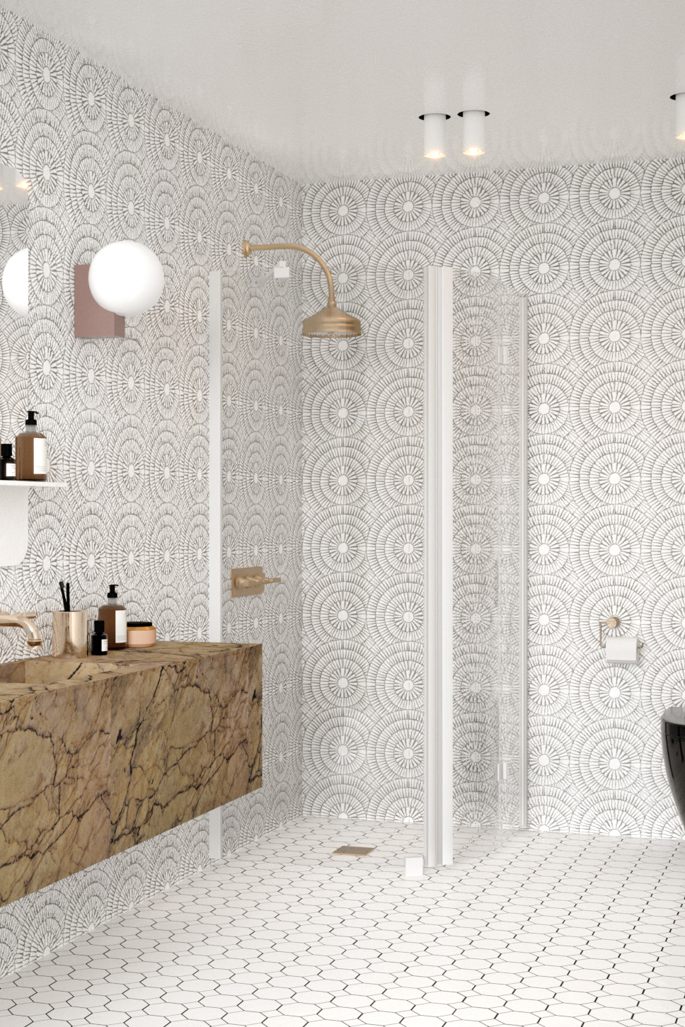 The size of the shower enclosure is selected from the standard dimensions. The adjustment range of the wall mountedprofile of the fixed part is 20mm and that of the door, 15mm respectively. The adjustment range can be used for levelling any tilt of the building s walls or for extending the widths of the sides of the shower enclosure in relation to the provided standard dimensions. The widths of one or both sides can be further extended by 34 mm via the extension profile (optional accessory). The extension profile can be grooved, for example, for the inlet of surface water pipes.