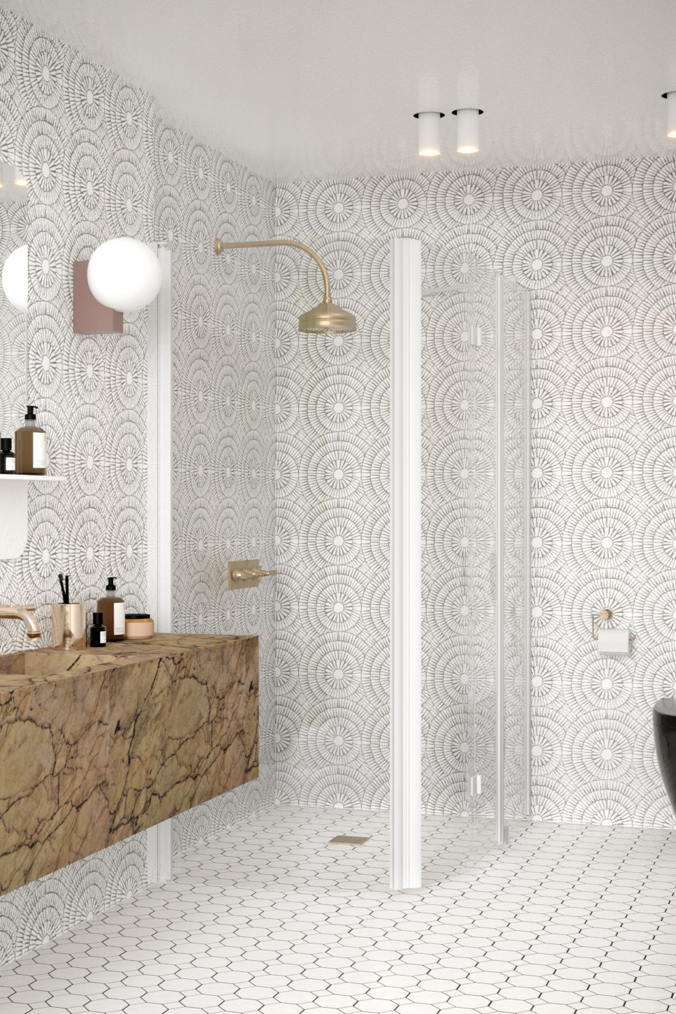 Shower wall and door are attached to the walls of the building from the sides by means of wall mountedprofiles. The fixed wall is supported from the top edge by the brace bar installed in the corner and from the bottom corner by the fitting glued to the floor. There will be a 25mm gap between the panel and the floor of the fixed wall. A seal (standard part) may be installed between the panel and the floor in order to prevent water from flowing under the panel. Floor seals , which limit the flow of water, can be installed along the bottom edge of the door panel. Installation guide
