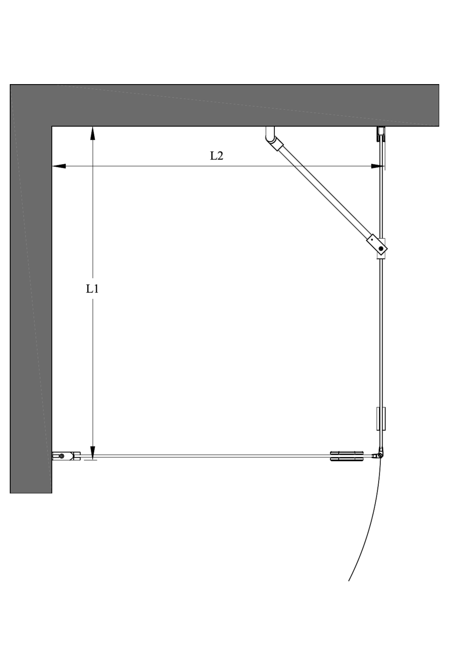 Shower wall and door are attached to the walls of the building from the sides by means of wall mountedprofiles. The fixed wall is supported from the top edge by the brace bar installed in the corner and from the bottom corner by the fitting glued to the floor. There will be a 25mm gap between the panel and the floor of the fixed wall. A seal (standard part) may be installed between the panel and the floor in order to prevent water from flowing under the panel. A floor seal , which limits the flow of water, can be installed a floor seal , which restricts the flow of water. Installation guide
