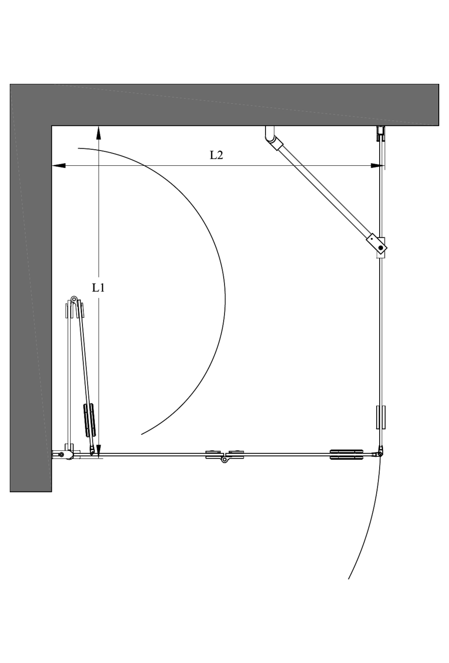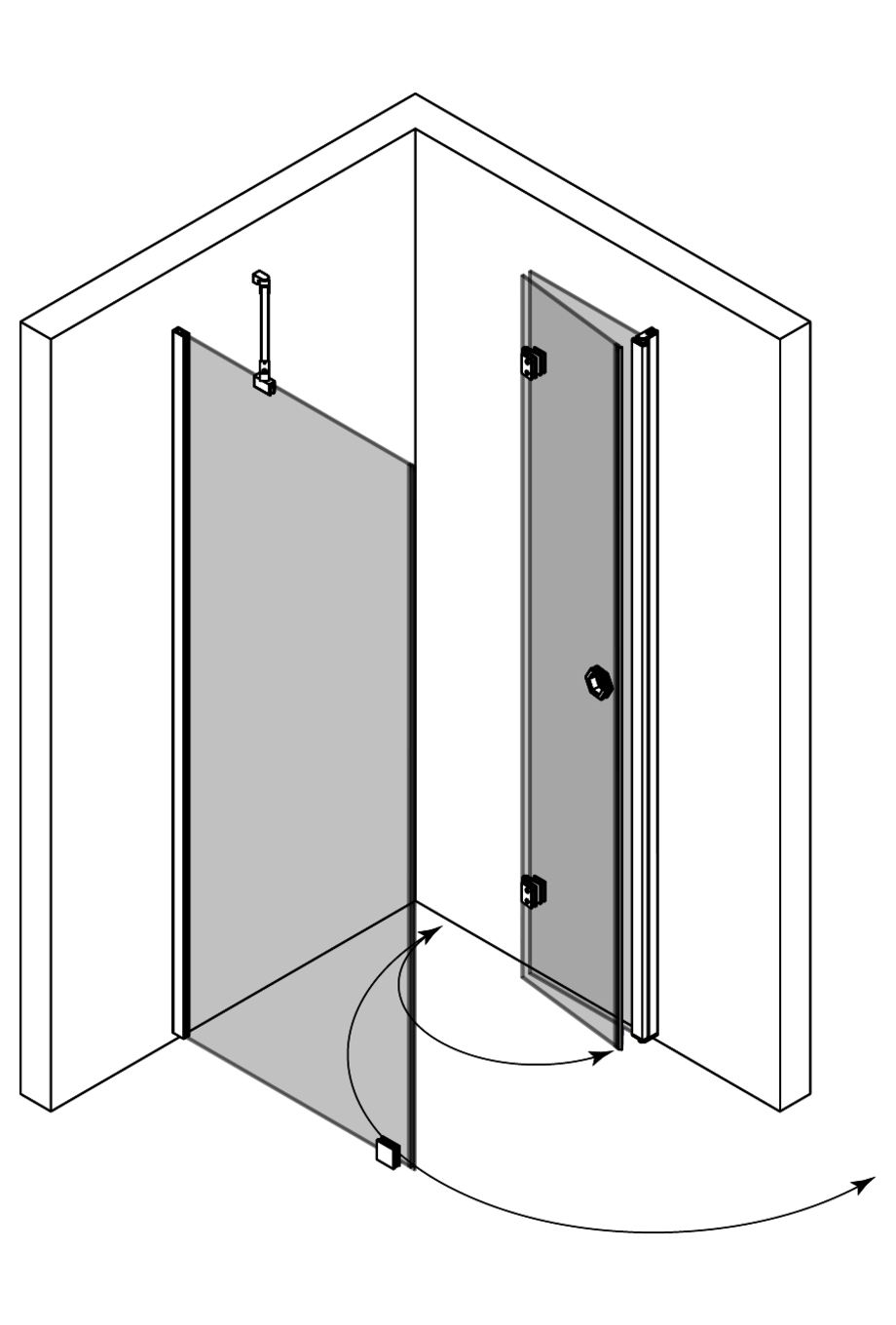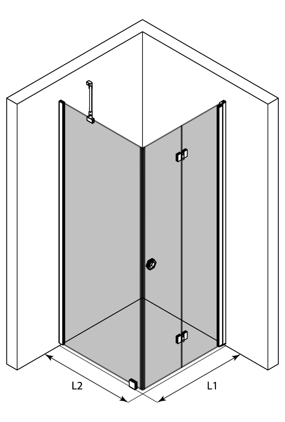 The size of the shower corner can be selected from among the standard sizes or it can be manufactured custom dimensions. The adjustment range of the wall mountedprofile of the fixed part is 20mm and that of the door, 15mm, respectively. The adjustment range can be used for levelling of any tilt of the building s walls or for extending the widths of the sides of the shower enclosure in relation to the provided standard dimensions. The widths of one or both sides can be further extended by 34 mm via the extension profile (optional accessory). The extension profile can be grooved, for example, for the inlet of the surface water pipes.