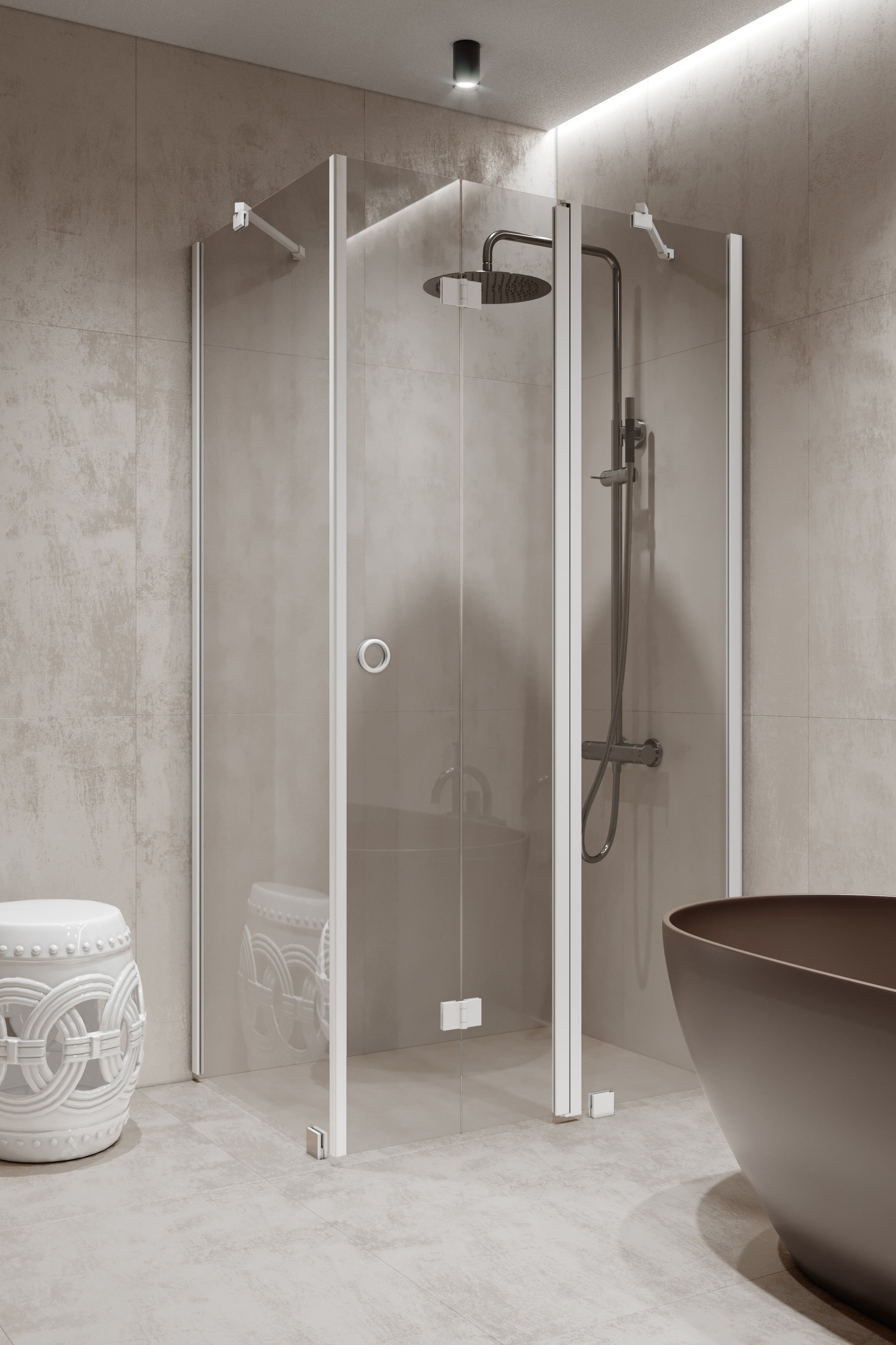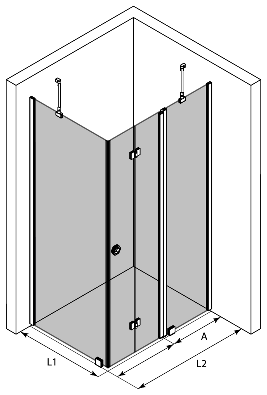 The size of the shower corner can be selected from the standard sizes or it can be manufactured based on special dimensions. The wall mountedprofiles have an adjustment tolerance 20mm. The adjustment tolerance may be used for levelling the tilt of the building s walls or for extending the widths of the sides of the shower enclosure in relation to the provided standard dimensions. The widths of one or both sides can be further extended by 34 mm via the extension profile (optional accessory). The extension profile can be grooved, for example, for the inlet of the surface water pipes.