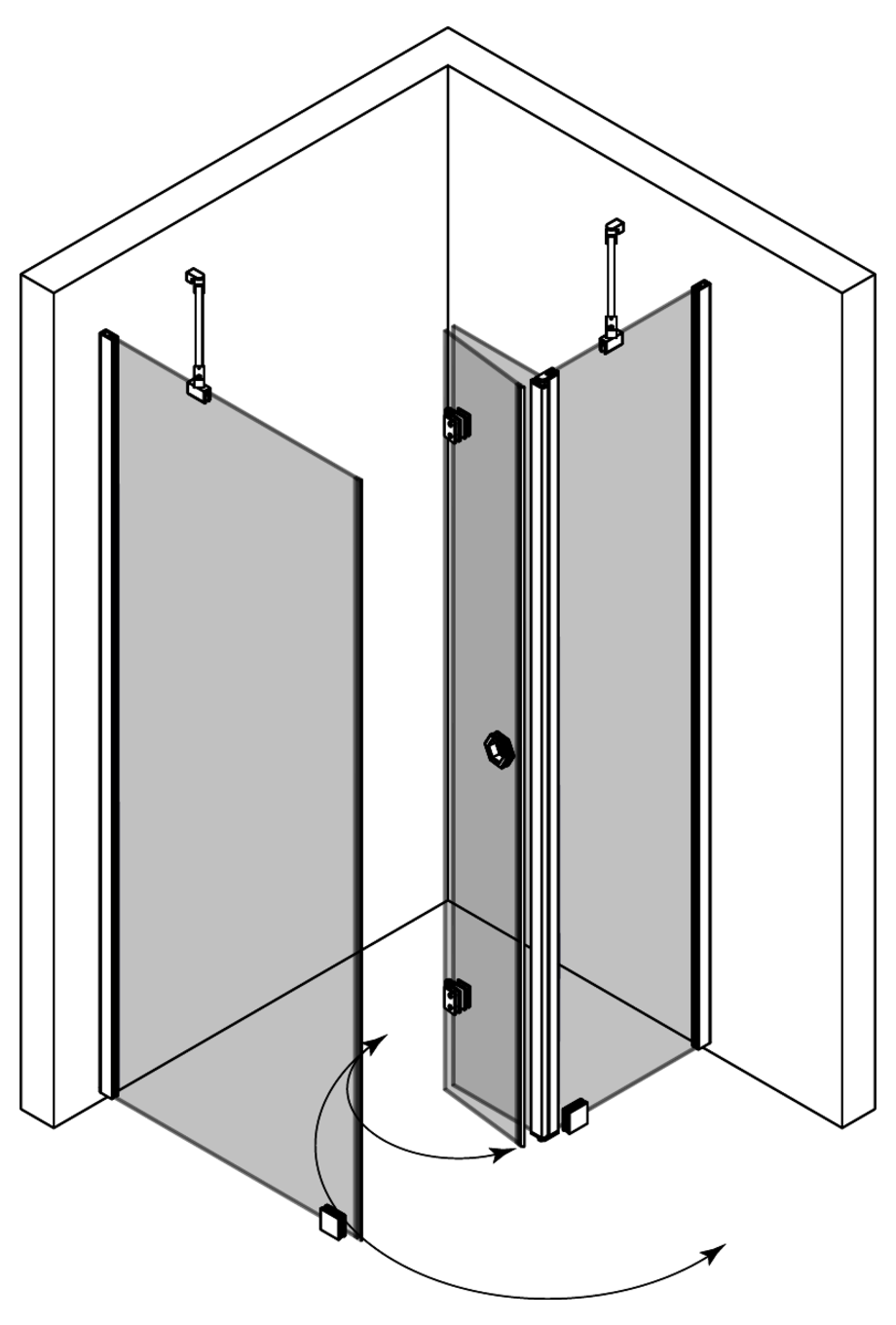 Fixed walls are attached from the sides to the walls of the building by means of wall mountedand supported from the top edge by the brace bars installed in the corners as well as from the bottom edge by the fitting glued to the floor. There is a gap of 25 mm between the panel of the fixed walls and the floor. seal (standard part)s may be installed between the panel and the Floor, in order to prevent water from flowing under the panel. Floor seals , which limit the flow of water, can be installed along the bottom edge of the door panel.Installation guide