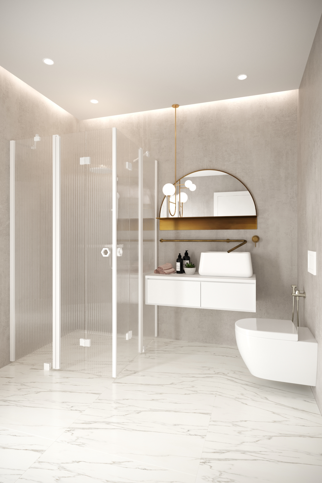 The size of the shower corner can be selected from the standard sizes or it can be manufactured based on special dimensions. The wall mountedprofiles have an adjustment tolerance 20mm. The adjustment tolerance may be used for levelling the tilt of the building s walls or for extending the widths of the sides of the shower enclosure in relation to the provided standard dimensions. The widths of one or both sides can be further extended by 34 mm via the extension profile (optional accessory). The extension profile can be grooved, for example, for the inlet of the surface water pipes.