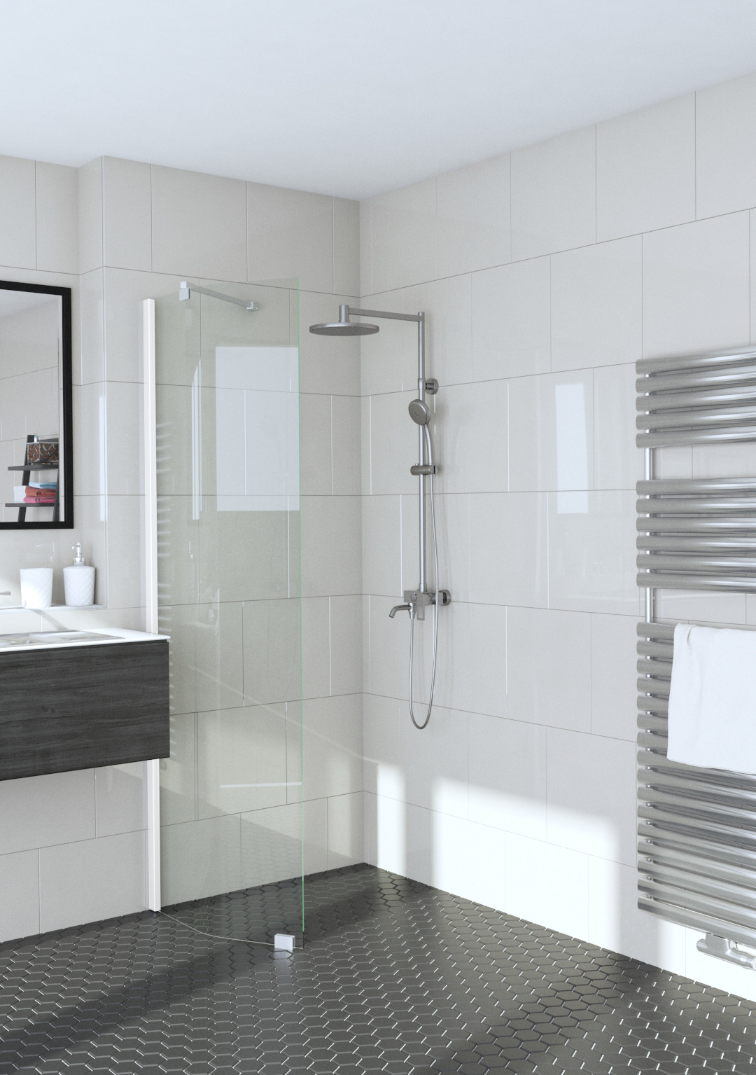 The fixed shower screen protects the space and the fixtures located next to the shower from splashing water. The fixed shower screen is sturdy and can be efficiently used for protection from water.