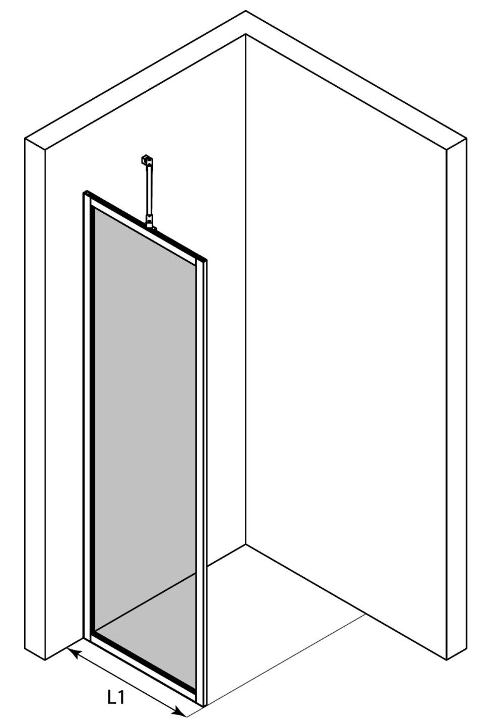 The wall mounting profile is screwed in to the building wall. The fixed shower panel with a tuning leg set up on the bottom is attached to the wall mounting profile with self-drilling screws. The support bar is set up from the top edge of the fixed panel and screwed into the building wall. A bottom seal can be attached to the shower panel to improve water retention, when a tuning leg is used. Installation guide