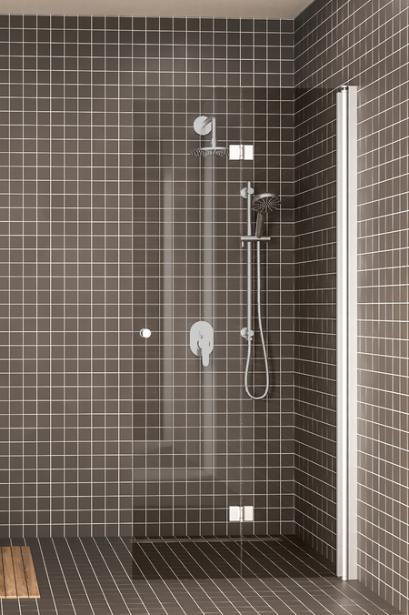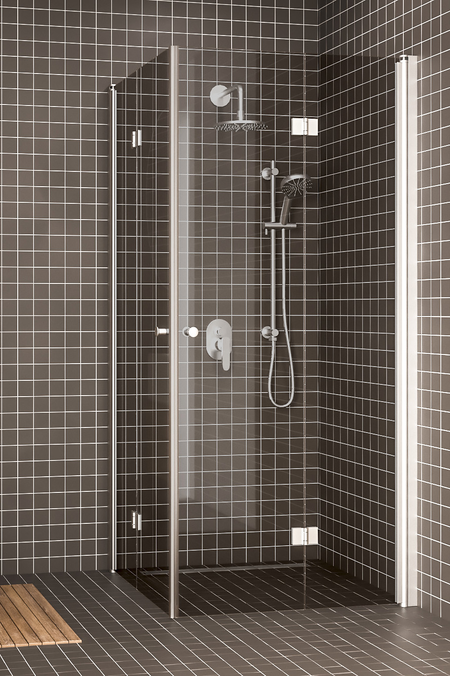 Shower enclosure with a fixed wall and a hinged door with a fixed part - Infinia 211
