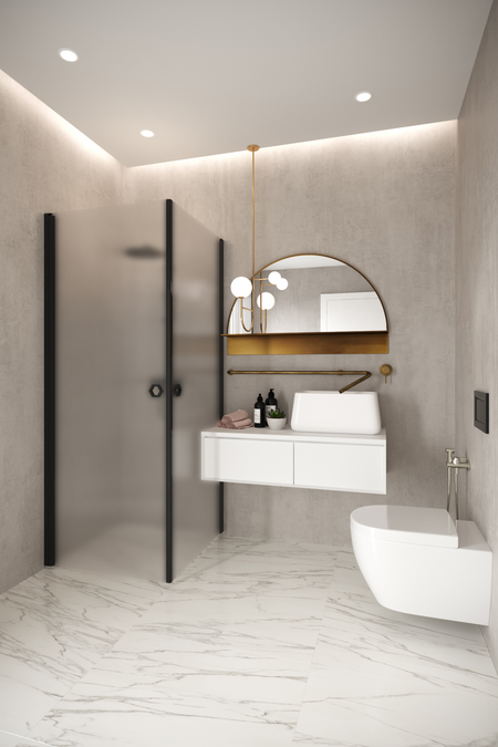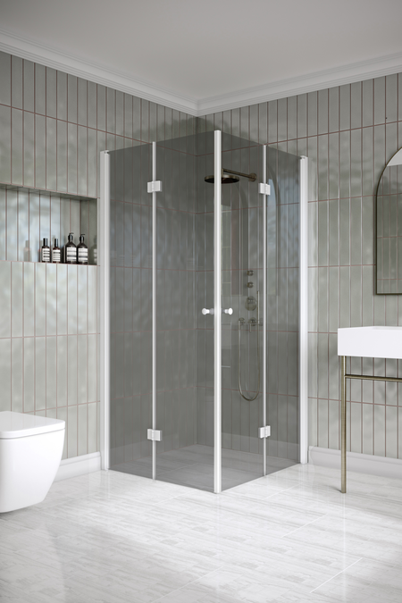 Curved shower enclosure with a folding door and a hinged door with a fixed part - Vetro 540 (511x512)