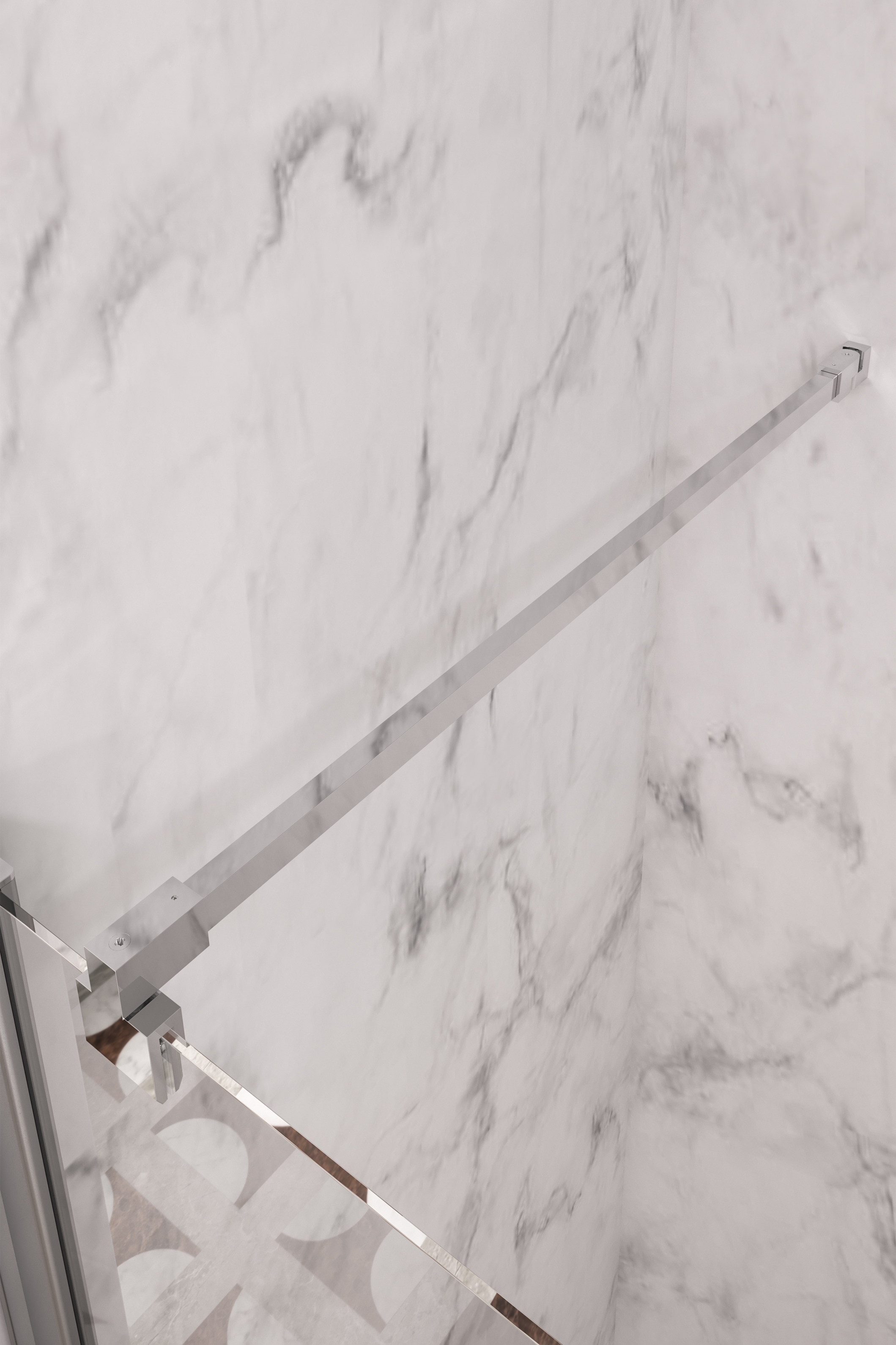Shower support bar to secure fixed panel to building wall. It can be used on glasses from 6-8mm. The length of the rod is 1280 mm, and it can be cut on site.