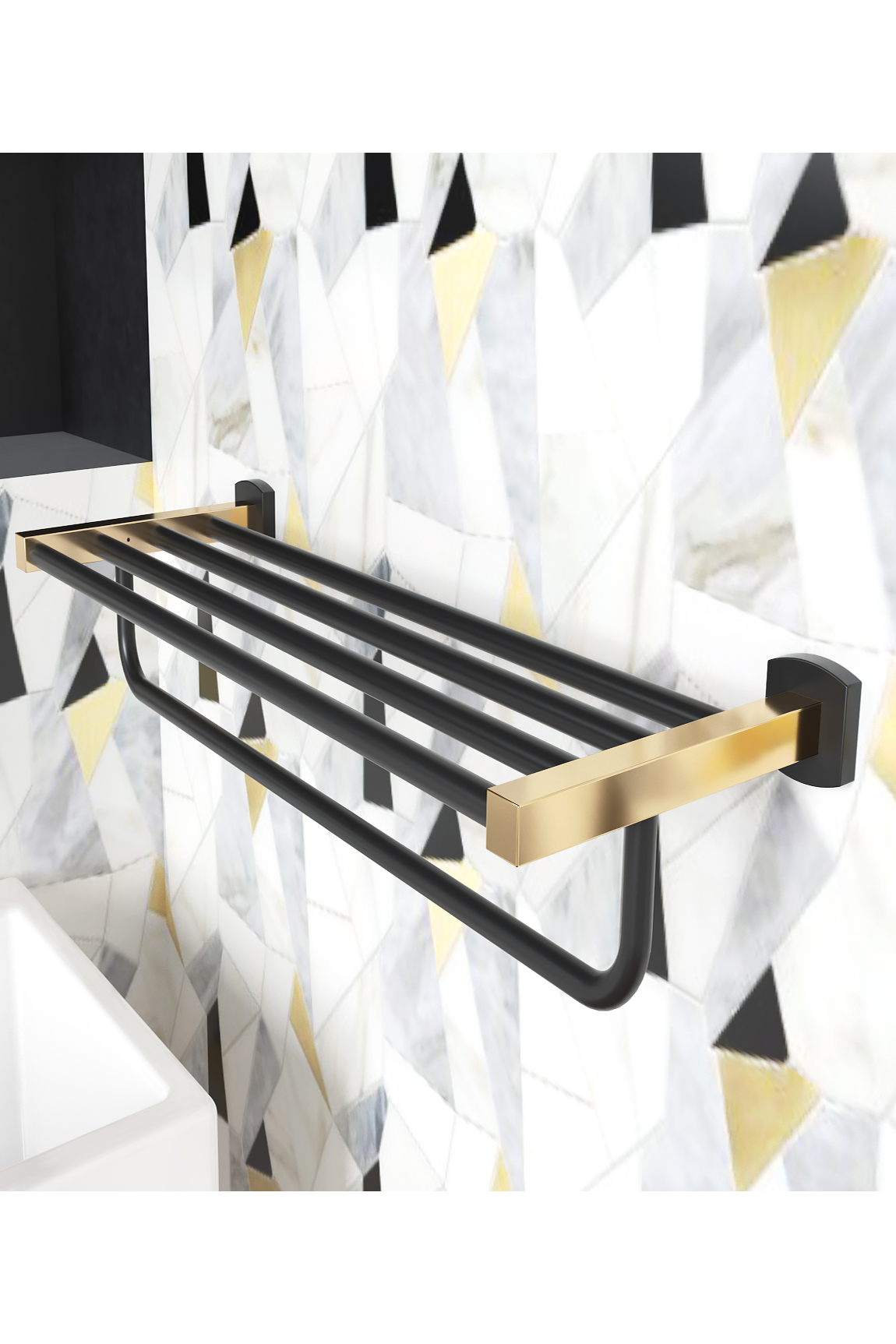 Mélange (meaning "mixture" in French) is a collection of bathroom accessories in bold double colour design. Towel rack in brass and black colour is manufactured from brass and stainless steel. To be attached with screws which are included in the package.