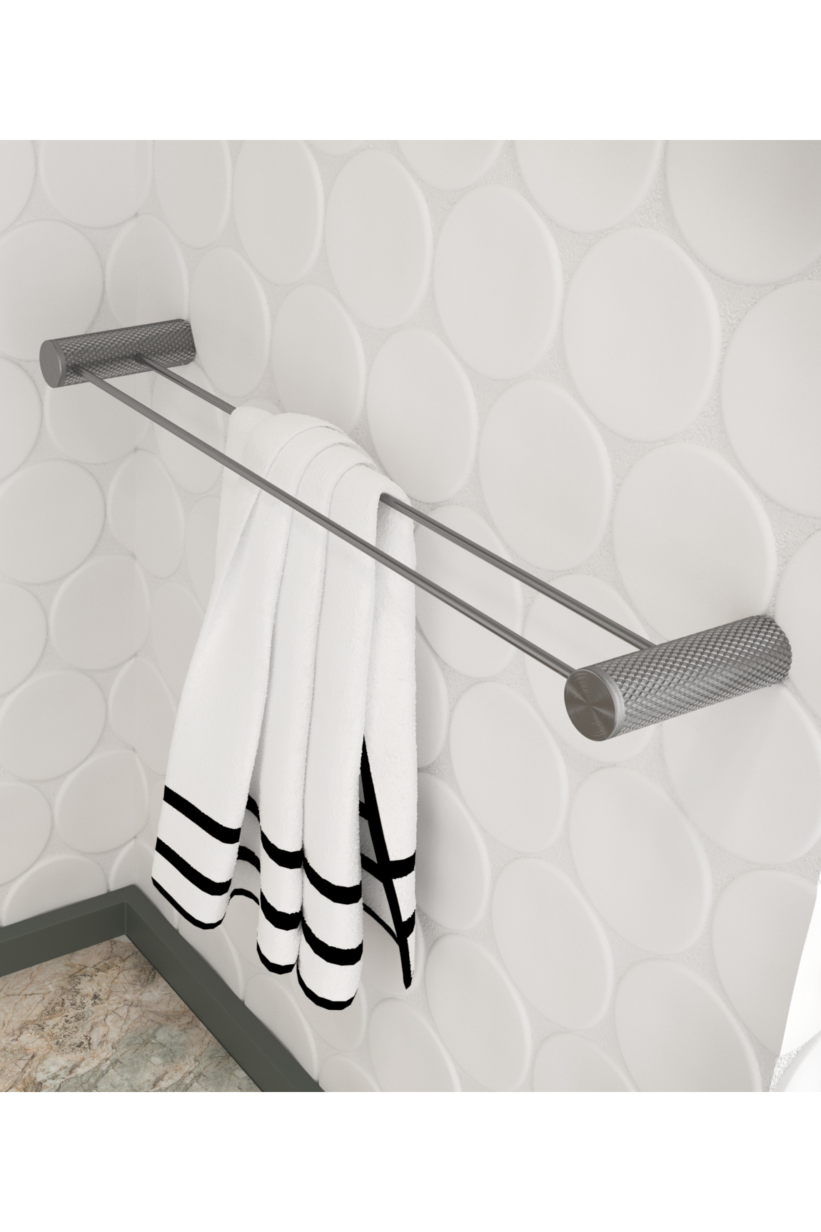 "Mesh is a collection of bathroom accessories in characteristic mesh surface design. The towel shelf is manufactured from brass.