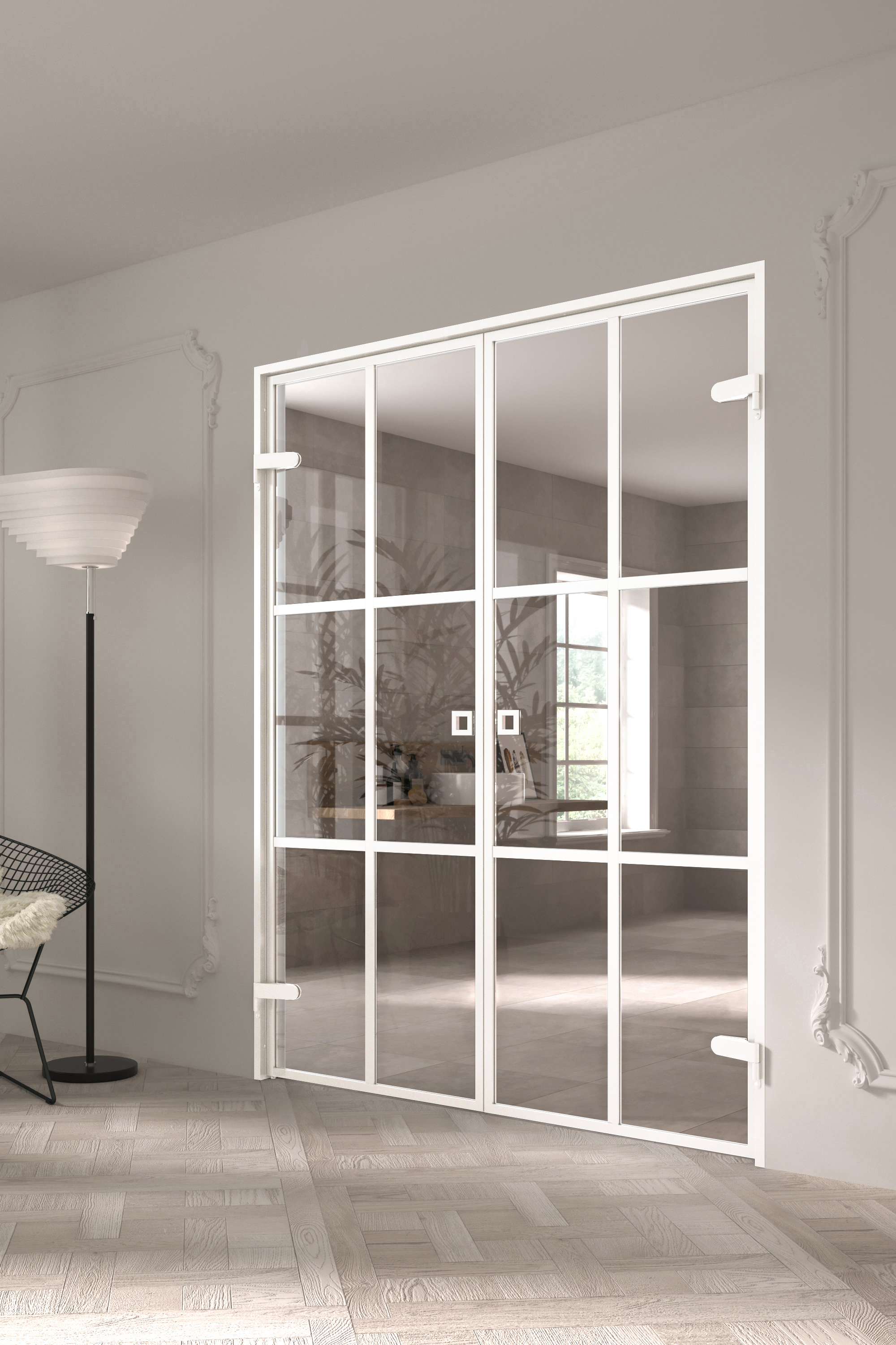 Inne lasipariovet koostuu kahdesta 180 astetta kääntyvästä ovesta. Tuotteessa on tukevat alumiinikarmit sekä karkaistusta lasista valmistetut ovilehdet. Tuotteen mukana toimitetaan karmit, saranat, molemmat ovilehdet, läpivetimet sekä karmiin kiinnitettävä magneetti, joka pitää ovet tiukasti suljettuna.
