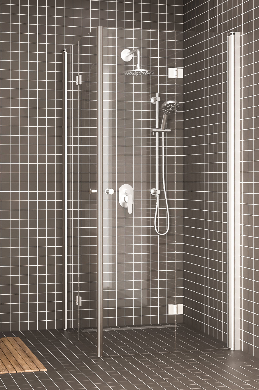 Suihkunurkan koko voidaan valita vakiomitoista tai se voidaan valmistaa erikoismitoin. Seinäkiinnitysprofiileissa on säätövaraa 15mm. Säätövaraa voidaan käyttää rakennuksen seinien mahdollisten kallistusten tasaamiseen tai suihkunurkan sivujen leveyksien kasvattamiseen ilmoitetusta vakiomitasta. Toisen tai molempien sivujen leveyksiä voidaan edelleen kasvattaa levennysprofiililla 34mm (lisävaruste). Levennysprofiili voidaan loveta esimerkiksi pintavesiputkien läpivientiä varten.