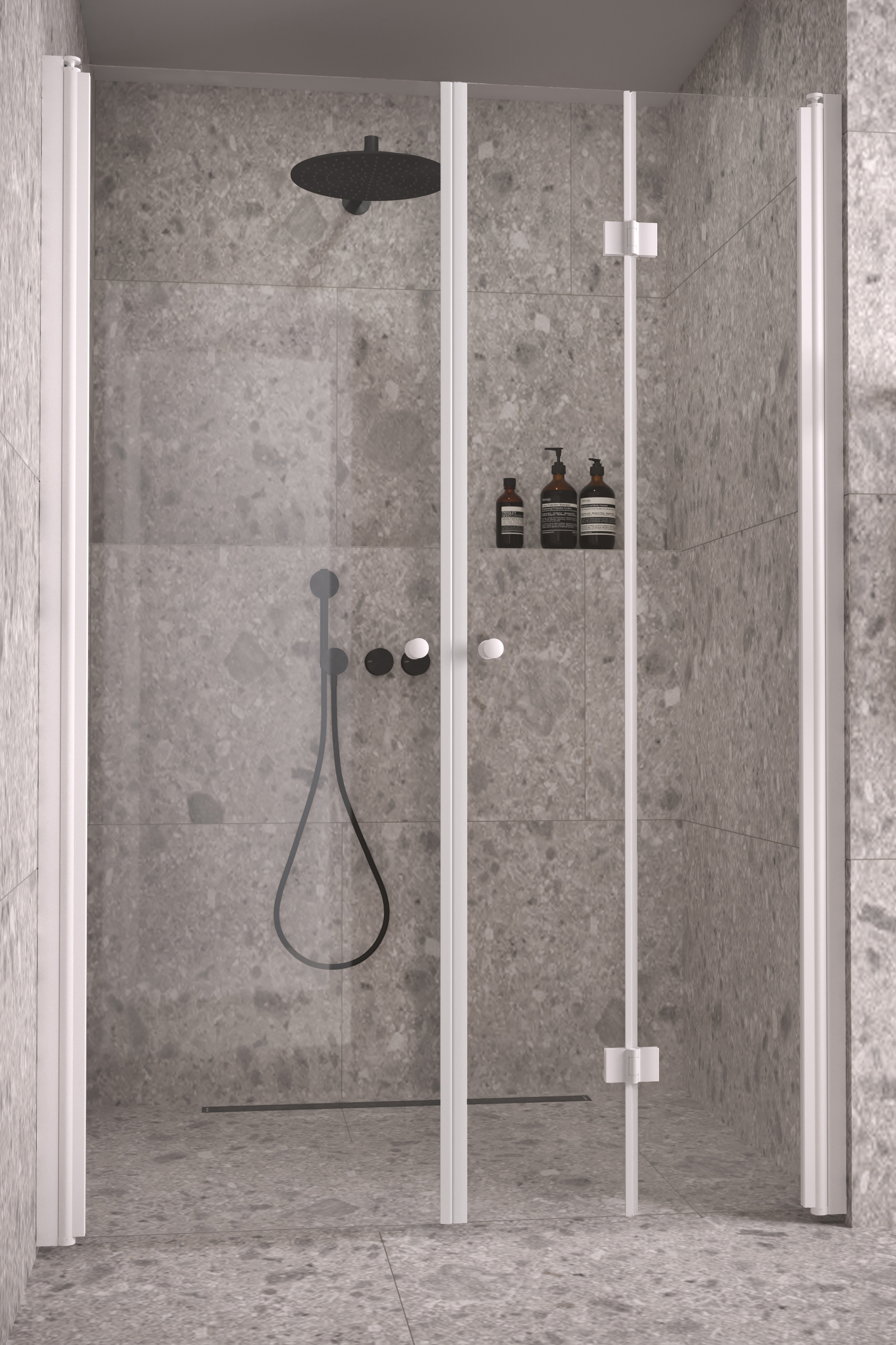 Tilanjakaja koostuu kääntyvästä ovesta ja taittuvasta ovesta. Tuote soveltuu hyvin suihkusyvennykseen, jossa ovet eivät välttämättä mahdu kunnolla avautumaan ulospäin molemmin puolin. Taittuva ovi ei vaadi avautuakseen tilaa suihkutilan ulkopuolelta vaan ovi kääntyy taittaen suihkutilan sisään niin, että ovilasit laskostuvat pieneen tilaan rakennuksen seinää vasten. Ovet voidaan mitoittaa symmetrisesti tai niin, että ovet ovat eri kokoiset. Kun suihku ei ole käytössä, ovet voidaan kääntää rakennuksen seiniä vasten.Ovet kääntyvät molempiin suuntiin 90 astetta ja varustetaan säädettävillä keskityksillä. Keskitys pyrkii palauttamaan ovet takaisin auki ja kiinni -asentoihin. Taittuvan oven uloin lasi kääntyy lisäksi 180 astetta sisempään lasiin nähden jolloin oven lasit taittuvat toisiaan vasten suihkutilan sisäpuolelle. Magneettitiivistepari pitää ovet tiiviisti suljettuna suihkun aikana.